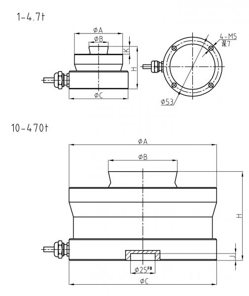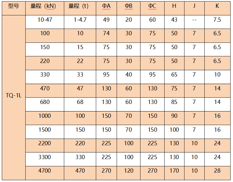 量程: 10kN(1t)、22kN(2.2t)47kN(4.7t)100kN(10t)、150kN(15t)220kN(22t)330kN(33t)470kN(47t)、680kN(68t)、1000kN(100t)、1500kN(150t)2200kN(220t)、3300kN(330t)、4700kN(470t)